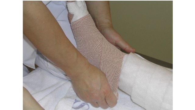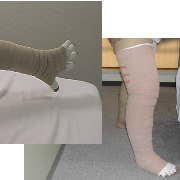 2)圧迫弾性包帯や圧迫ストッキング・圧迫スリーブによる圧迫療法、