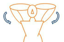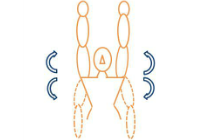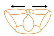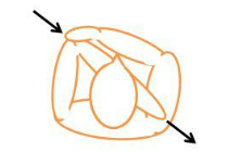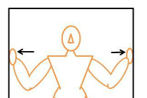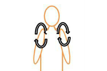 手を胸の高さで相互に引っ掛け、体の前で引き合う