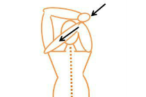 腕を曲げ、頭の後に引きつけ、反対側の手で曲げた肘をつかみ 、斜め後ろに引きつけ10秒保持