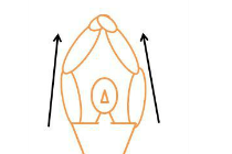 肩の高さで腕をU字にしてそのまま指先を下に向ける