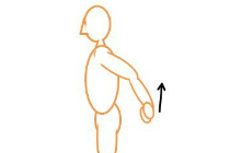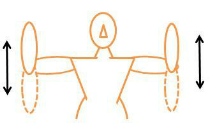 腕を伸ばしたまま、体の真横で上へ上げ、その後ゆっくり下げる
