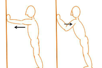 ドアの枠内に立ち、手を肩の高さにして枠を押す