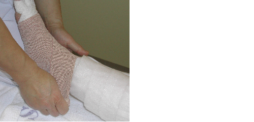 活動性や利便性の面で、また経済性の面でもストッキング・スリーブが優れているため圧迫着衣が主となっていますが、浮腫を減少させたい場合には弾性包帯とのコンビネーションも有効です。外出時や活動時は弾性着衣を使用し、外出しないで家にいる時間が多い場合には弾性包帯を巻く使用法です。巻き方は慣れることが必要ですが、難しく考えずにチャレンジすると良いと思います。「ドイツの治療」でも書きましたが、入院治療後期の安定した状態になって退院後に使用するのが弾性着衣本来の使用法といえます。