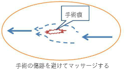 ②吻合手術をした場所・箇所を確認し、その瘢痕部分にはマッサージを行わない