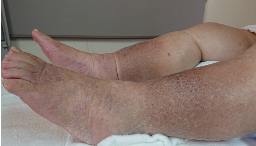 夏は普通に生活している場合にも「あせも」は出来ますが、リンパ浮腫の治療では圧迫治療が必要なため、更に「あせも」ができ易くなることがあります。日中は気を付けていても、夜間に無意識に「あせも」を掻き壊す事もあり、皮膚のバリアを壊してしまいます。夏季は「あせも」でなくとも湿疹などの皮膚にダメージを与える症状が起きやすくなります。この様な皮膚のダメージを極力避けることも考えながらのリンパ浮腫治療になるので、夏季の治療は難しい選択を迫られます。