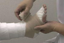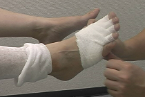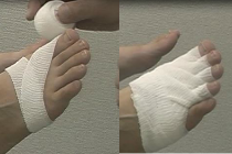 趾と甲を2つ折りにした伸縮性包帯で巻く