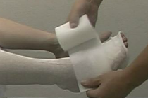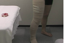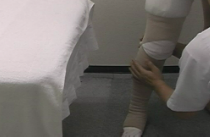 下肢全体を巻き上げて、布製絆創膏で留めて終了